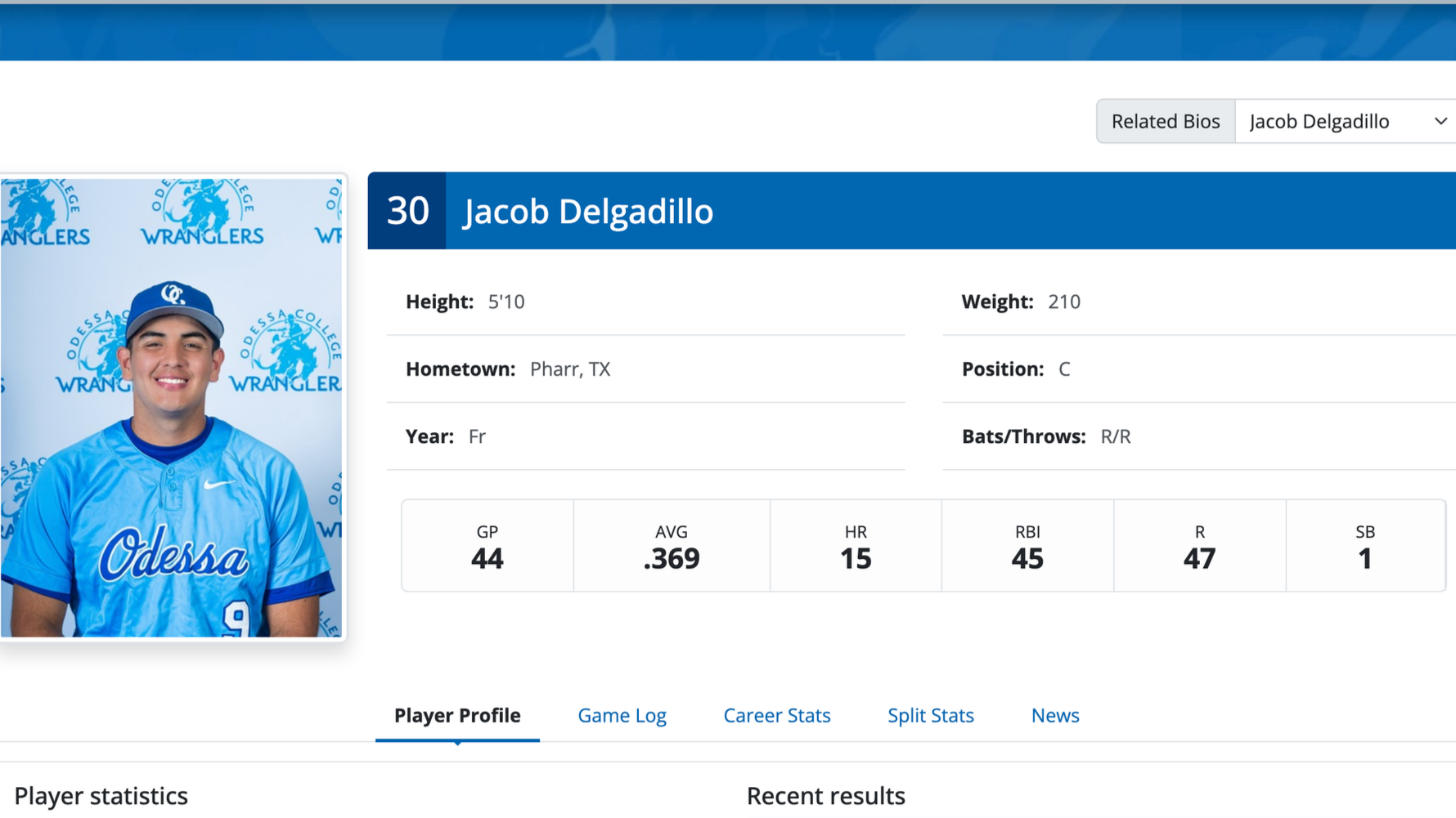 Our 2025 Laredo & RGV Overall MVP has been proving his worth at the college level. Jacob Delgadillo, a freshman at Odessa College, is making a great case to be recruited after just one year in JUCO ball. He is hitting .369 with 15 home runs, 45 RBI, 47 runs scored. Those are crazy numbers! The backstop is a PSJA alumni who led them to the 6A Region IV final last season against Dripping Springs. He is fun to watch! Look for him to be heavily recruited by some larger schools as his freshman season comes to a close.PSJA Alum Jacob Delgadillo has had a fantastic freshman season at odessa college